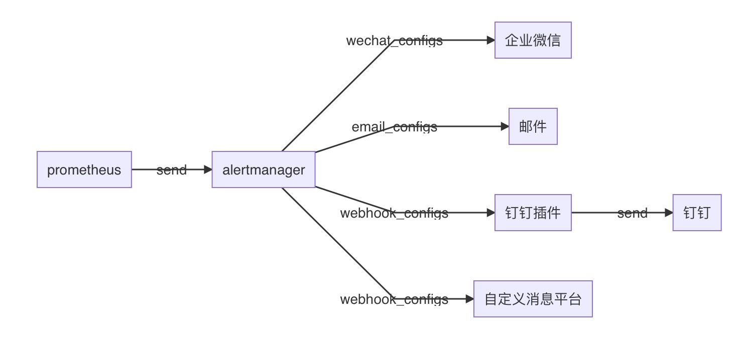 prometheus的alertmanager本身不支持直接使用钉钉告警的方式,若配置钉钉告警需要webhook插件做为组件。